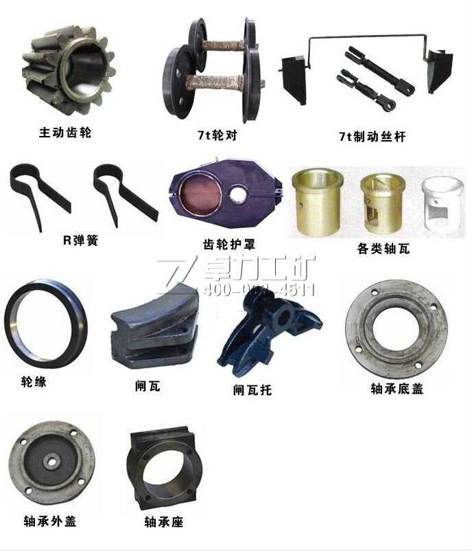 主動(dòng)齒輪、7t輪對(duì)  7t制動(dòng)絲桿 R彈簧 齒輪護(hù)罩 各類軸瓦 輪緣 閘瓦 閘瓦托 軸承底蓋 軸承外蓋 軸承座