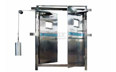 2、門扇為角鋼、鋼板、鋼板網(wǎng)組焊而成,鋼板網(wǎng)對應安裝鋼板門扇。