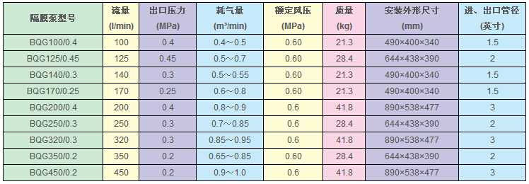 4、揚(yáng)程、流量可通過氣閥開度實(shí)現(xiàn)無級調(diào)節(jié)(氣壓調(diào)節(jié)在1-7bar之間)