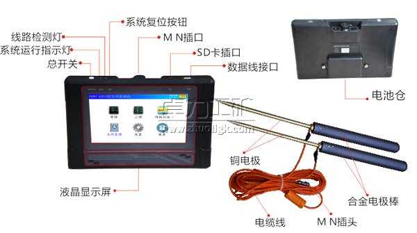 PQWT-KD系列天然電場智能化一鍵成圖空洞儀重量輕易于攜帶,測線只需要10米,單人就能完成操作,節(jié)約人力,全觸摸界面,操作簡單,外接大容量內(nèi)存卡,儀器帶有實時繪圖功能,對尋找高阻值,低阻值,通過實時繪圖直接現(xiàn)場就能反應(yīng)異常。經(jīng)過儀器采集的數(shù)據(jù)通過儀器獨有內(nèi)置的運算功能實現(xiàn)了自動呈現(xiàn)曲線圖、地質(zhì)剖面圖,根據(jù)剖面圖清晰的了解地質(zhì)層結(jié)構(gòu) 可快速的確定空洞、溶洞、遺址等具體信息 。