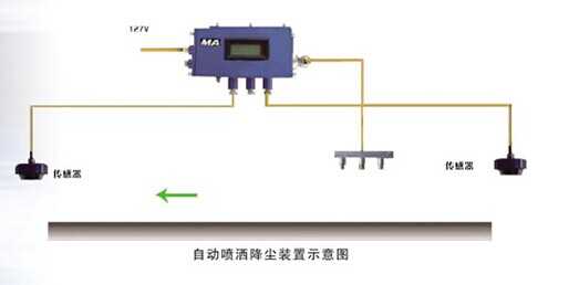 礦井自動噴霧降塵系統(tǒng)主要用于煤礦井下綜采工作面、綜掘工作面、各運輸轉(zhuǎn)載點、大巷和其他進回風(fēng)巷道、煤倉及其它需要對粉塵濃度設(shè)限噴霧降塵的場所,通過 ZP-127