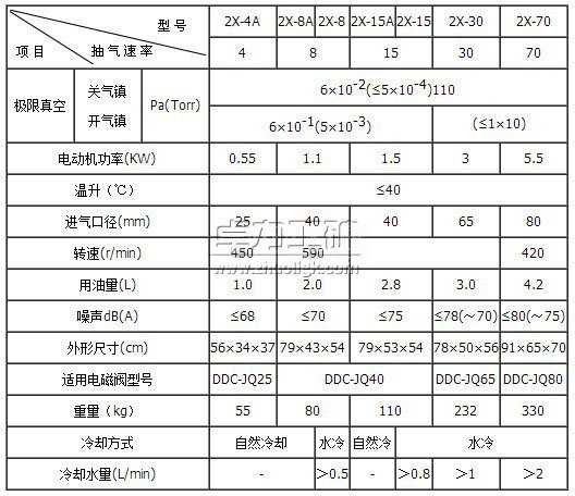 四、2X型雙級旋片式真空泵技術(shù)參數(shù)表