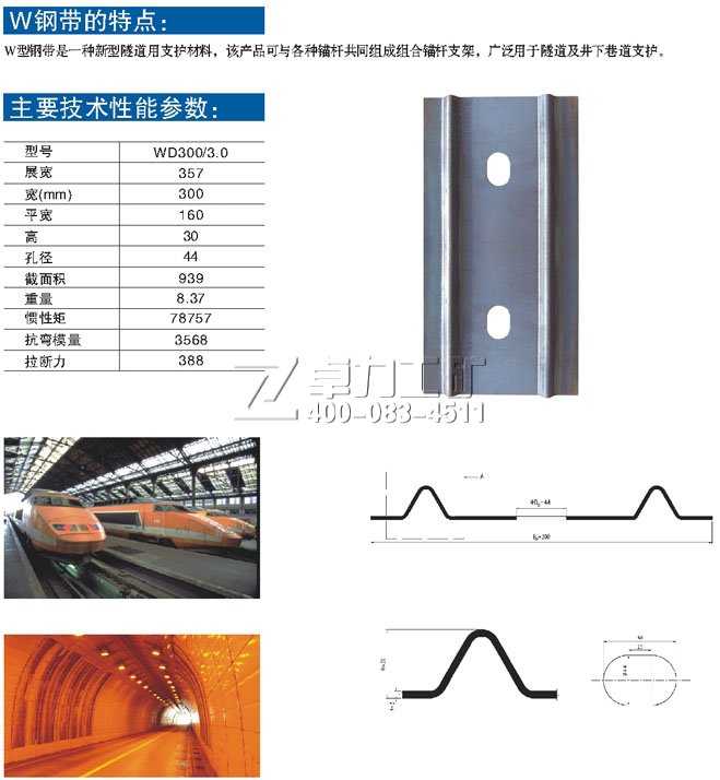 W鋼帶是一種新型礦山支護(hù)材料,W鋼帶(M鋼帶)采用厚度3-5mm寬度180-320mm卷鋼板,經(jīng)過(guò)冷彎成W/M型后,在礦用M鋼帶(礦用W鋼帶)中部加工出與錨桿株距相等錨桿孔的鋼帶。