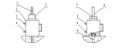 3 操作步驟ZL-1.5T/3T/5T型系列錨桿拉力計(jì)結(jié)構(gòu)見圖1。![]() 1儲(chǔ)油筒 2注油口 3壓把 4卸荷閥 5數(shù)顯壓力表 6高壓油管 7快速接頭8 液壓缸 圖1 安裝圖 操作程序請(qǐng)按以下步驟進(jìn)行: 1.檢查油量 如液壓缸活塞沒有完全縮回到缸體內(nèi)時(shí),應(yīng)首先通過油管連接至手動(dòng)泵,逆時(shí)針方向擰松泵體上的卸荷閥,使液壓缸中的液壓油排回到手動(dòng)泵儲(chǔ)油筒中。 擰開注油口蓋,檢查油量,如油不滿(儲(chǔ)油筒中應(yīng)留有約1/5空間),可加注N32號(hào)耐磨液壓油。 2.排氣 液壓系統(tǒng)組裝好后,儲(chǔ)油筒、油管及液壓缸中;煊锌諝,為使液壓系統(tǒng)正常,這些空氣必須排掉。方法是擰松注油口蓋,以便儲(chǔ)油筒內(nèi)空氣排出。將手動(dòng)泵放在比液壓缸稍高的地方,順時(shí)擰緊卸荷閥,壓手動(dòng)泵,使液壓缸活塞伸出至最大行程,再打開卸荷閥,使活塞縮回,連續(xù)幾次即可。 3.檢測(cè)錨桿 按圖2所示,將錨桿拉力計(jì)與被測(cè)錨桿連接好,如錨桿為螺紋鋼筋,可參照?qǐng)DA連接。如錨桿為圓鋼外露部分有螺紋,可參照?qǐng)DB連接。本公司生產(chǎn)的MJ—1型φ6~φ40不同規(guī)格的15種錨具及各種規(guī)格的拉缸及轉(zhuǎn)換接頭可根據(jù)實(shí)際需要選購。 將卸荷閥順時(shí)擰緊,慢壓手動(dòng)泵使活塞桿伸出約10 mm,其目的是避免安裝錨具敲打楔片時(shí)損傷活塞桿,也給退錨帶來方便。安裝與錨桿相配套的錨具或螺母并固定可靠,打開壓力表開關(guān),均勻用力壓手動(dòng)泵,壓力增加至最大值,停止加壓。記錄或儲(chǔ)存壓力表數(shù)據(jù)后將電源關(guān)閉。 圖1中擰松卸荷閥,活塞可自動(dòng)縮回至液壓缸內(nèi)。在圖2 A所示連接狀態(tài)需拆卸時(shí),可敲打錨具外殼,使夾片脫離外殼,然后卸下液壓缸。在圖2 B所示連接狀態(tài)需拆卸時(shí),可先將螺母退下,然后卸下液壓缸。 4.壓力表操作方法 1.壓力檢測(cè) 按動(dòng)開關(guān)電源開關(guān),儀表開始工作。按關(guān)機(jī)鍵,儀表停止工作。按背光鍵,顯示屏背光開啟,再按此鍵,剛關(guān)閉背光。 按動(dòng)存儲(chǔ)鍵,在顯示屏左下方顯示一個(gè)小三角形,指示當(dāng)前為讀取存儲(chǔ)模式。在讀取存儲(chǔ)模式下,再按此鍵,顯示后一個(gè)存儲(chǔ)值,按下清零鍵,則顯示前一個(gè)存儲(chǔ)數(shù)值,存儲(chǔ)和清零一起實(shí)現(xiàn)了存儲(chǔ)值的前后翻閱,關(guān)閉電源后,存儲(chǔ)值全部清零。按峰值鍵,顯示屏右上角顯示一個(gè)小三角形,指示當(dāng)前為峰值模式,再按此鍵,則退出峰值鍵。 工作完成后點(diǎn)動(dòng)開關(guān)鍵,顯示屏關(guān)閉、儀表斷電。 2.用戶調(diào)整 按背光鍵五秒鐘,進(jìn)入用戶壓力調(diào)整模式,此時(shí)按存儲(chǔ)鍵,顯示屏數(shù)值減小,按清零鍵,顯示屏數(shù)值增大,調(diào)整好后按峰值鍵確認(rèn),當(dāng)顯示壓力比實(shí)際壓力小時(shí),則數(shù)值要加大,當(dāng)顯示壓力比實(shí)際壓力大時(shí),則數(shù)值要減小。 3.壓力校正 在電源關(guān)閉狀態(tài)下,同時(shí)按住“存儲(chǔ)”和“峰值”鍵,然后開機(jī),顯示屏顯示――:――,這時(shí)按“清零”鍵數(shù)字加,按“存儲(chǔ)”鍵移位,輸入密碼“55AA”,然后按“峰值”鍵確認(rèn),開始進(jìn)入校正程序。這時(shí)顯示屏顯示“0000”,存入當(dāng)時(shí)零位,然后再按“峰值”鍵,這是顯示屏顯示“050.0”,然后壓力壓到50kN,再按“峰值”鍵確認(rèn),這是顯示屏顯示“100.0”,然后壓力壓到100kN,再按“峰值”鍵確認(rèn),這時(shí)顯示屏顯示“150.0”,再按峰值鍵確認(rèn),壓力壓到對(duì)應(yīng)的kN值,一直按峰值10秒,標(biāo)定結(jié)束。 注:儀器出廠前均已標(biāo)定,如在使用過程中發(fā)生數(shù)據(jù)清除等現(xiàn)象導(dǎo)致數(shù)據(jù)不準(zhǔn)的情況,請(qǐng)與我公司售后聯(lián)系重新標(biāo)定事宜。若有標(biāo)準(zhǔn)壓力源可自行標(biāo)定,否則不建議用戶自行標(biāo)定。 ![]() A B 1 被測(cè)錨桿(螺紋鋼) 2液壓缸 3 錨具 4 進(jìn)油口 (加載時(shí)) 5出油口(加載時(shí)) 6 被測(cè)錨桿(圓鋼) 7螺母 8加長桿 圖2 工作圖 5 常見故障及排除方法