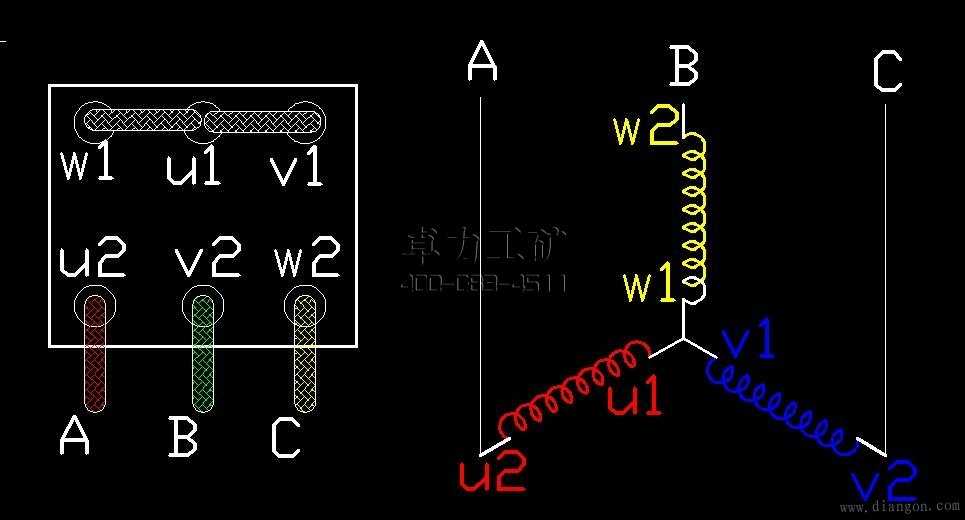 今天在現場學了點三相異步電機的基本接法:星型接法和三角接法。雖然是些很簡單的東,但勉。