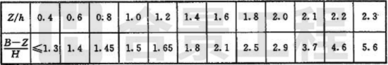 注:當Z/h>2.3時,建筑物的相關尺寸可不受限制。