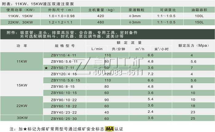 山東卓力工礦ZBY型11kw/15kw/22kw/30kw液壓雙液注漿泵型號齊全: